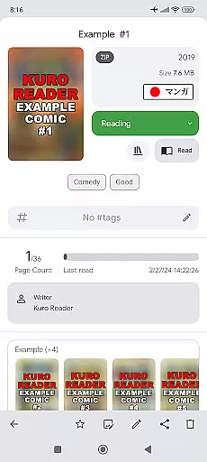 Kuro Reader+ Pro boasts an impressive array of features that enhance the reading experience. The app provides seven extra themes beyond the standard options, allowing users to personalize their interface with ease. Readers can also save images directly from comics to their device with a single touch and edit basic comic metadata for better organization.