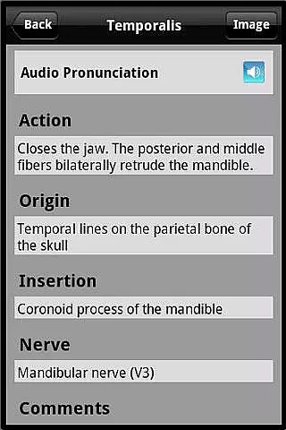 The app further reinforces its reliability through an audio pronunciation guide for each muscle term. Such a feature not only aids in correct terminology usage but also reflects the application's commitment to linguistic accuracy in a scientific context, which is crucial for students and healthcare practitioners alike.
