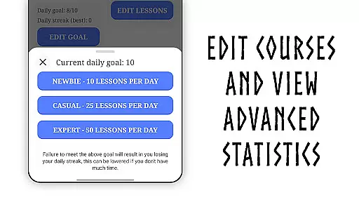 Learn Old Norse+ excels in creating personalized learning experiences tailored to individual needs. Users can set daily goals according to their proficiency level, whether they are casual learners or experts. The streak notification system motivates users by alerting them when they are at risk of breaking their learning streak.