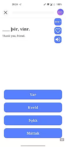 Another significant aspect is the app's focus on auditory learning, offering pronunciation support and the ability to listen to words and phrases before viewing answers. This feature is complemented by gamification elements such as earning gems and revealing hints, which encourage consistent engagement. Advanced statistics provide insights into user performance, including streaks, hints used, and time spent learning. These features collectively create a dynamic and interactive environment that not only teaches Old Norse but also makes the process enjoyable and rewarding.