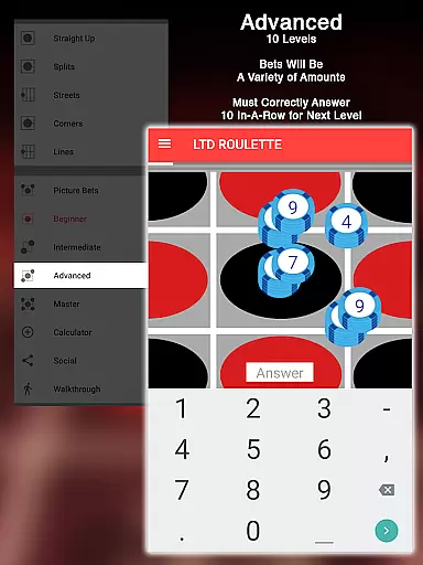 Users can benefit from different difficulty levels—Beginner, Intermediate, Advanced, and Master Levels—each designed to progressively challenge and enhance the user's skills. The app generates over hundreds of thousands of randomly created bets, ensuring that every session is unique and engaging. This randomness mimics real-life casino conditions, thus preparing users for any situation they might encounter.