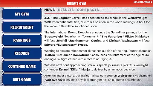 LEATHER® stands out with its deep strategic gameplay and realistic boxing management features. You can recruit from a pool of amateurs, professionals, or veterans, each with unique traits and potential. The fight planning system requires careful analysis of both your boxer and their opponents, adding layers of tactical depth.