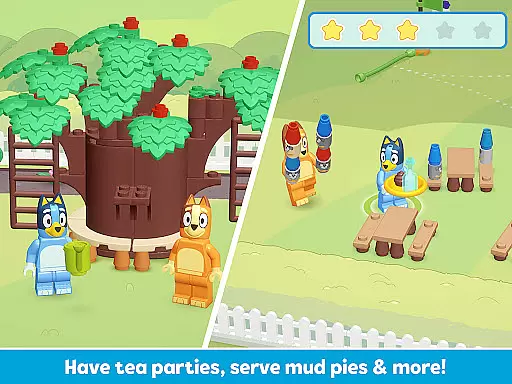 LEGO® Bluey is an educational game that brings the beloved characters from the Bluey series into a creative LEGO world. The app features themed play packs with both LEGO DUPLO and system bricks, offering balanced play experiences that combine creativity, challenges, and open-ended digital activities. Children can engage in various scenarios such as hosting tea parties, going on road trips, enjoying beach days, and playing around the house.