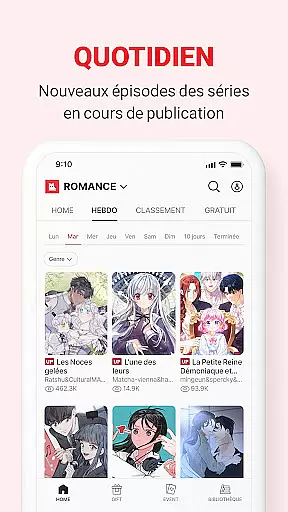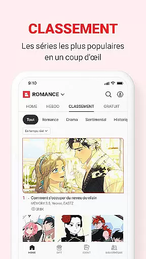 LEZHIN FR stands out with its exclusive content offerings and user-friendly features. The app provides a vast selection of original series across various genres including Romance, BL, and Fantasy, each crafted to evoke deep emotional responses. The vertical scrolling functionality allows for seamless reading without interruptions, enhancing the overall user experience.