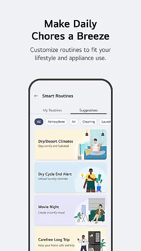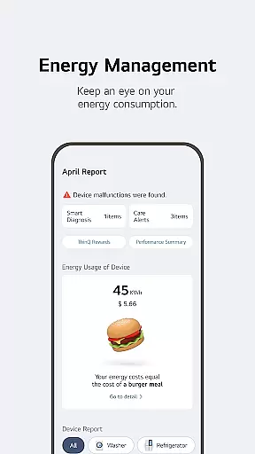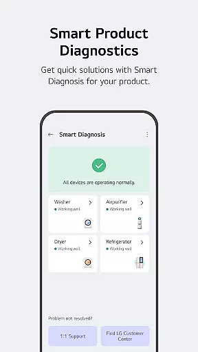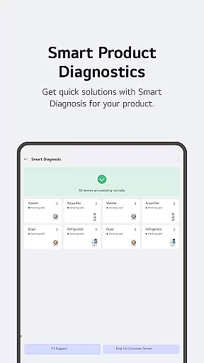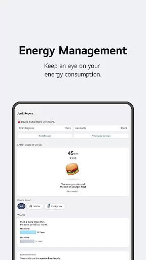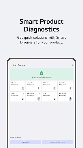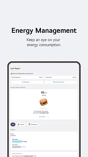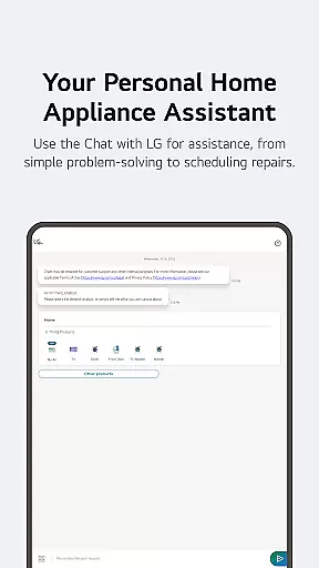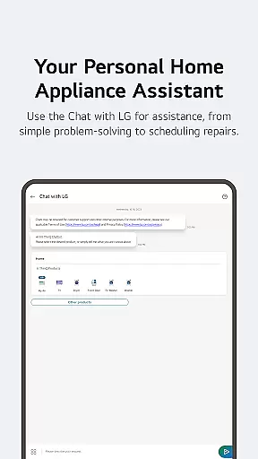 Advanced monitoring tools provide detailed insights into energy usage patterns, helping users make informed decisions about their consumption habits. The integrated 'Chat with LG' feature utilizes artificial intelligence to deliver personalized support and troubleshooting advice. Additionally, the app's comprehensive service management system streamlines maintenance requests and professional support booking, ensuring minimal disruption to your smart home operations.