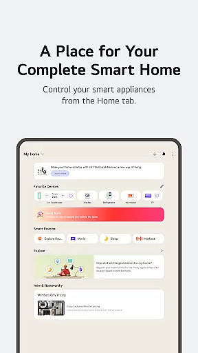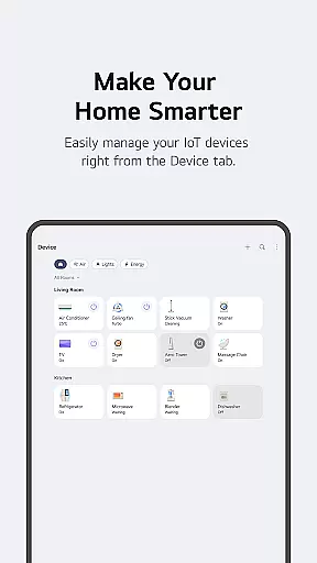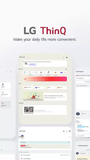 LG ThinQ is a comprehensive smart home solution that connects and controls IoT-enabled LG appliances. The app serves as a central hub for managing your smart home ecosystem, offering features like remote product control, energy monitoring, and personalized recommendations. Through its intuitive interface, users can access advanced functionalities such as Smart Diagnosis, automated routines, and AI-powered customer support through 'Chat with LG'.