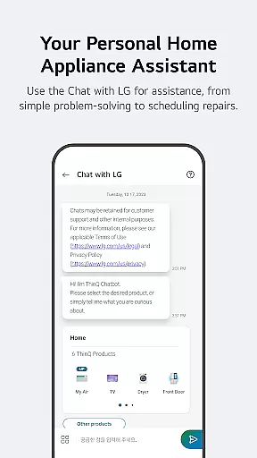 Furthermore, the AI-powered 'Chat with LG' function offers tailored responses to user inquiries about ThinQ home appliances. By leveraging AI algorithms and expert knowledge, the chatbot delivers precise and helpful information, ensuring users can make informed decisions regarding their smart home devices.