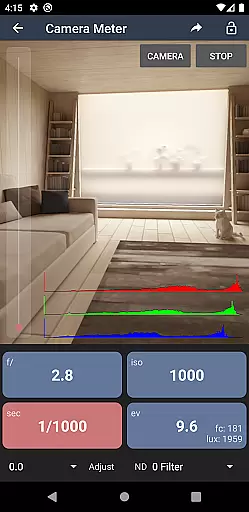 Light Meter stands out with its dual functionality, offering both reflected and incident light metering options. The spot metering feature utilizes the device's camera to measure light reflected off subjects, while the incident light meter uses the device's light sensor to measure the light falling on the subject. This dual approach ensures accurate readings in various lighting conditions, making it versatile for different types of photography.