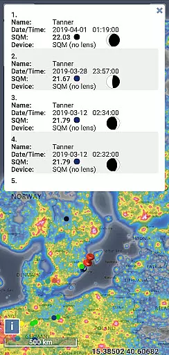 Another notable aspect is the variety of mapping tools available. These include point/area info, moon info, brightness simulation, finding the closest dark site, and even adding your own SQM measurements. The app supports offline usage with World Atlas 2015 caching, ensuring accessibility even without an internet connection. Its intuitive interface, smooth controls, and fullscreen mode make navigation seamless, while the clean design respects user privacy by avoiding ads and tracking.