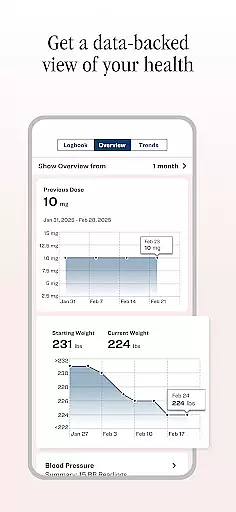 Lilly Health is a comprehensive medical application designed to support patients undergoing treatment with Zepbound® or Mounjaro®. The app offers personalized health management features, including medicine tracking, activity logging, and dosage reminders. Users can visualize their health trends through customizable charts and sync data from various smart devices for a holistic view of their wellbeing.