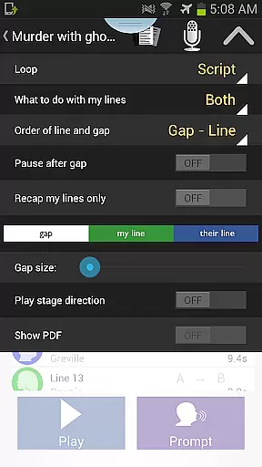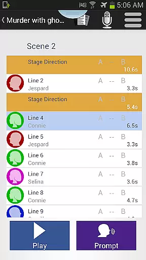 Additional professional-grade features include integrated stage direction annotation and comprehensive audio management tools directly accessible from the recording screen. These capabilities, combined with traditional learning aids like line repetition and prompts, create a robust platform that supports both novice and experienced performers throughout their rehearsal process.