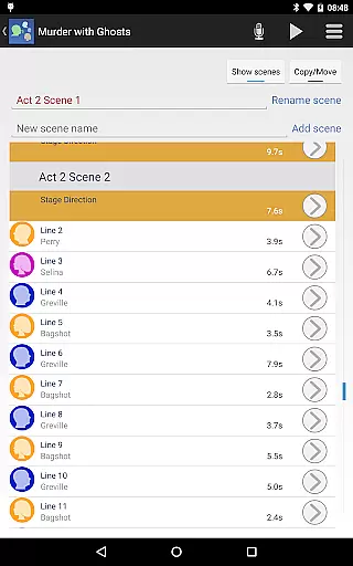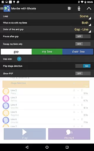 LineLearner offers an impressive array of features that cater specifically to actors' needs. The app's core functionality revolves around its sophisticated recording system, which enables users to capture entire scenes and manipulate playback to suit their learning style. This includes the unique ability to toggle different characters' lines on and off, creating customized practice sessions that simulate real performance conditions.