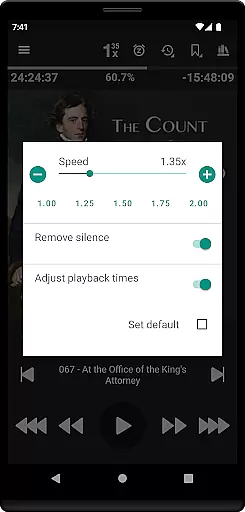 Listen Audiobook Player boasts an impressive array of features that cater to audiobook listeners' needs. One of its key functionalities is the ability to handle embedded chapters in most audio codecs, making navigation through audiobooks seamless and efficient. Users can also enjoy enhanced audio quality with pitch control, volume boost, and an equalizer, which can be set globally or customized per book.