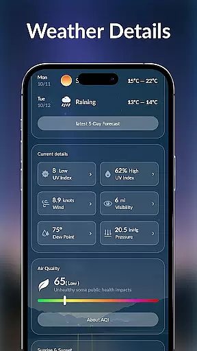One of the standout features of Live Weather: Real & Forecast is its ability to deliver precise, up-to-the-minute weather information. Users can check live weather updates that show the exact conditions outside, including temperature, humidity, wind speed, and more. This ensures that users have a complete understanding of the current weather situation.