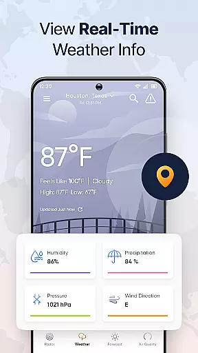 In addition to its radar capabilities, the app offers a weekly weather report feature, giving users insights into upcoming weather trends. It also includes an air quality index tracker, ensuring users are informed about the quality of the air they breathe. With swipe-right accessibility from the home screen, users can quickly access these features, making weather updates more convenient than ever.