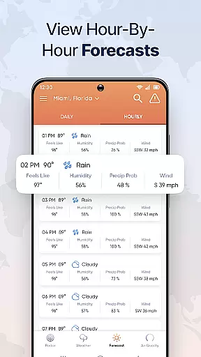 With the app's hourly weather outlook extending up to 96 hours, users can stay informed about upcoming weather conditions throughout the day and week. This long-range forecast helps individuals plan their schedules effectively, whether it involves work, travel, or leisure activities.
