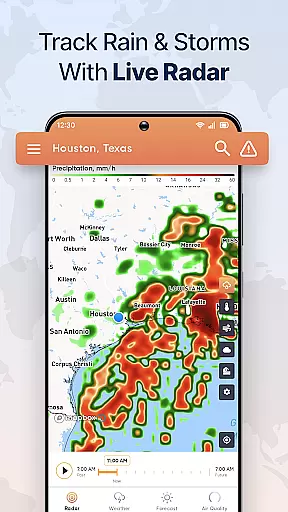 Another notable feature is the radar forecast map, which lets users view past weather patterns and expected conditions. With playback capabilities, users can see both historical and future forecasts, enhancing their understanding of weather trends. The app also provides hourly and seven-day forecasts, delivering detailed outlooks that help users plan their days and weeks with confidence.