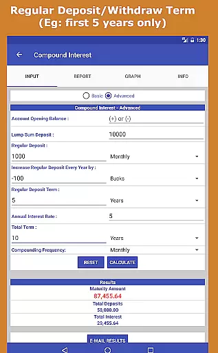 The app also supports advanced functionalities like pre-payments (extra repayments) that illustrate potential interest savings and reductions in loan terms. Users can simulate changes in interest rates and observe the impact on monthly repayments and overall loan duration. Furthermore, the Compound Interest Calculator offers various deposit and withdrawal frequencies, compounding options, and the ability to adjust regular contributions annually by a fixed amount or percentage. These features ensure that users can model complex financial scenarios accurately.