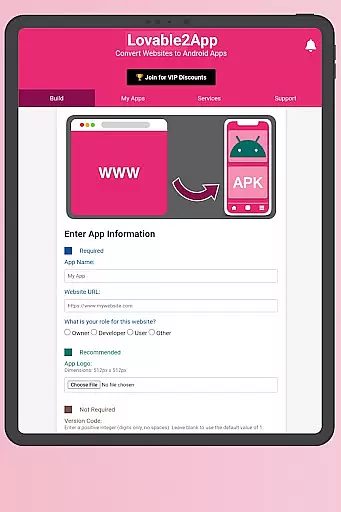 Lovable2App is a powerful business tool designed to convert Lovable.dev websites into fully functional Android applications without any coding. This app empowers website owners, entrepreneurs, and creators to expand their digital presence by transforming their existing sites into mobile apps.