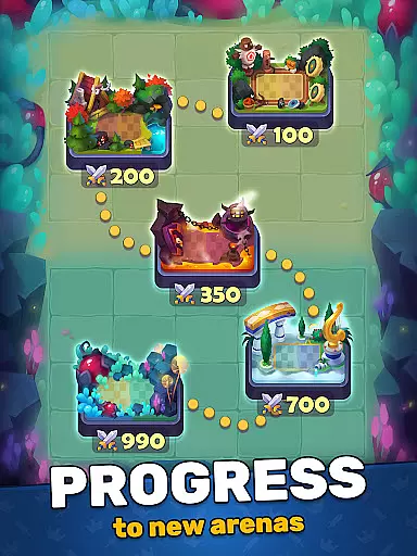 The game offers multiple arenas and empires to conquer, each requiring different tactical approaches. Players can participate in various game modes including royale battles, clan contests, and competitive ladder matches, providing diverse gameplay experiences.
