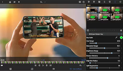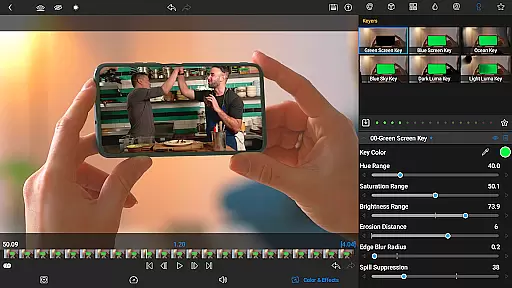 For visual effects, LumaFusion offers speed ramping and enhanced keyframing, available through an in-app purchase or Creator Pass subscription. These tools add eye-catching effects to motion and allow natural movement paths for titles and graphics.