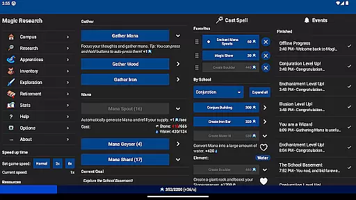 Magic Research stands out with its deep simulation mechanics and extensive content. Players can cast over a hundred unique spells, each with distinct effects, while researching various magical schools to unlock surprising new powers. The resource management system allows you to construct and expand your campus, adding depth to strategic planning.