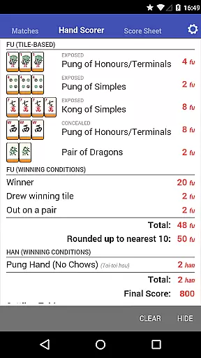 The application supports multiple scoring systems including European Classical, Hong Kong, Japanese Modern, and Chinese Official rules. With its intuitive interface featuring beautiful, easy-to-read tiles, users can effortlessly calculate scores and track match histories. Whether you're learning the game or perfecting your skills, Mahjong Helper provides valuable insights into scoring mechanics.