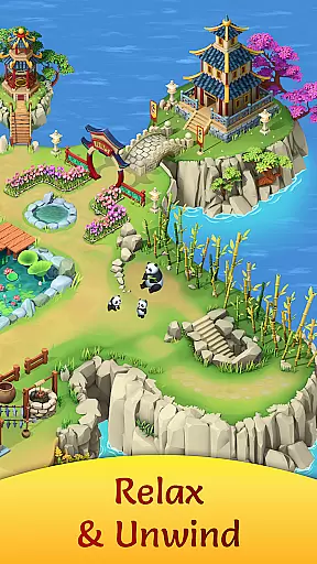 A key highlight is the island-building component, where matched tiles transform into resources for constructing pagodas, gardens, and traditional buildings. The game progresses through varied landscapes, each presenting unique challenges and layouts. Additional features include smart hints, unlimited undos, daily rewards, and an achievement system that tracks progress and unlocks special buildings as players master the game.