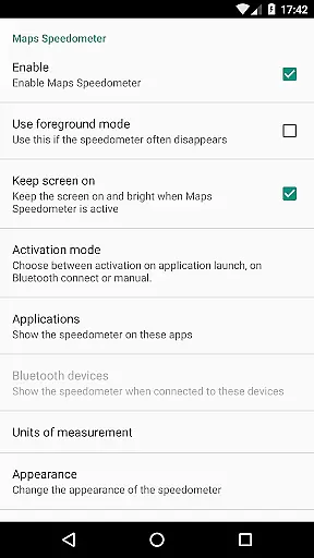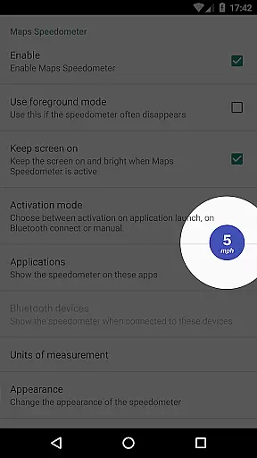 Maps Speedometer is a versatile travel companion that displays your current speed in real-time as an elegant overlay within any app of your choice. This innovative tool automatically activates when your selected app is in use and discreetly hides when it's not, ensuring minimal distraction. The app also supports Bluetooth connectivity, allowing the speedometer to appear whenever you connect to a different Bluetooth device.