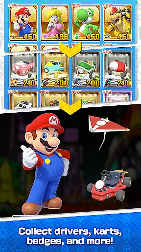 The game showcases courses inspired by real-world locations such as New York and Tokyo, alongside classic Mario Kart tracks. Each tour lasts two weeks, bringing fresh content regularly. Players can collect various drivers, karts, and gliders, earning Grand Stars and badges to display next to their names.