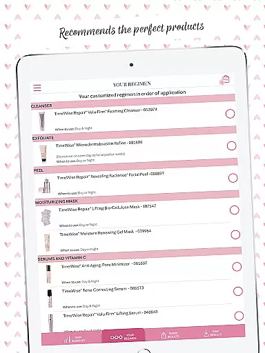 Recommendations are presented in a logical application order, ensuring users follow an effective skincare routine. The personalization extends further by allowing results to be shared via text or email, keeping users connected with their preferred Mary Kay Independent Beauty Consultant.