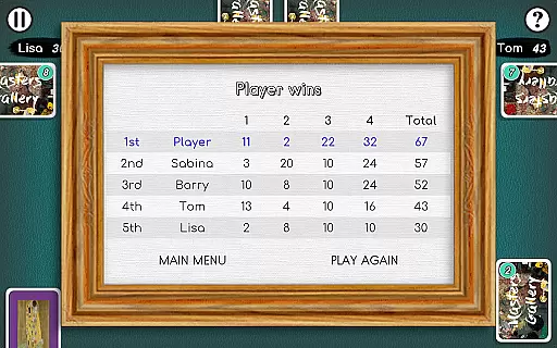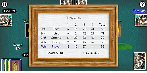 The app offers multiple computer skill levels, interactive tutorial modes, and in-game achievements to enhance replayability. With customizable card colors for colorblind players and adjustable game speeds, Masters Gallery provides an accessible and engaging experience for both newcomers and seasoned players. Whether you're a fan of the original board game or new to this strategic world of art collecting, Masters Gallery delivers a rich and rewarding card game experience.