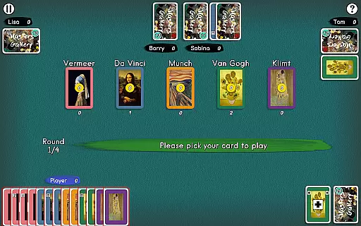 Masters Gallery is the official digital adaptation of Reiner Knizia's classic card game, also known as Modern Art The Card Game. As a collector and gallery owner, you will buy and promote works of art, increasing their value and that of the artist, with the goal of becoming the richest among your rivals. Played over four rounds with 2-5 players, the game challenges you to strategically play cards from your hand to maximize points while balancing risk and reward.