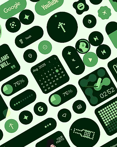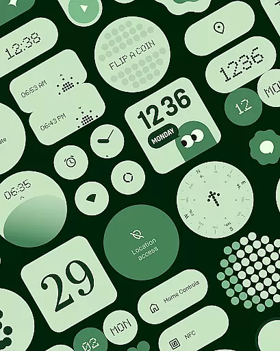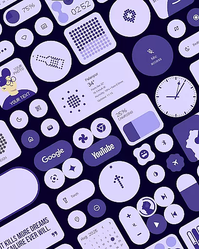 Key features include resizable clock, calendar, weather, and battery widgets, quick settings controls, and photo frames. With native functionality requiring no third-party apps, users can easily customize their Android devices with modern shapes, bold typography, and adaptive theming.
