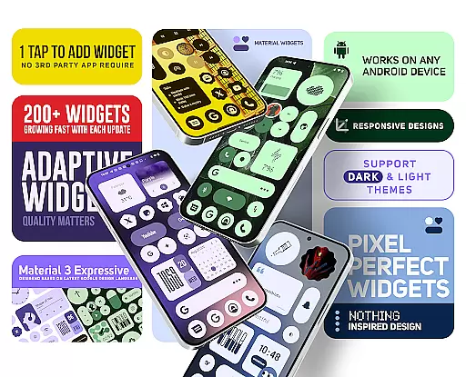 Ideal for those seeking an expressive and functional home screen, Material Widgets makes device personalization both effortless and visually stunning.