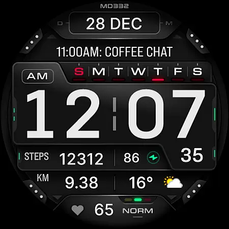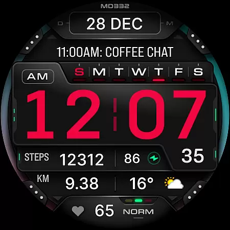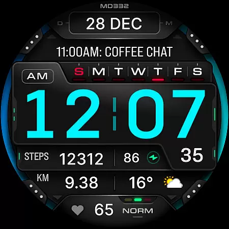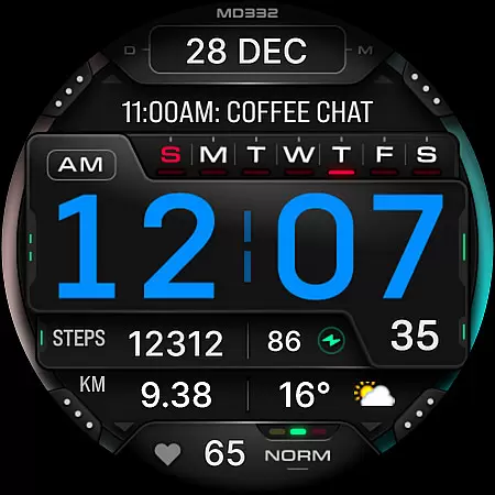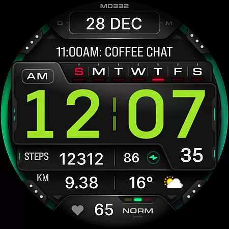 Moreover, the MD332 Digital watch face provides extensive customization options. Users can change the colors of time, date, seconds, background, and general elements, offering a personalized touch to match individual preferences. With big numbers and multiple complications, it caters to both aesthetic appeal and functional utility.