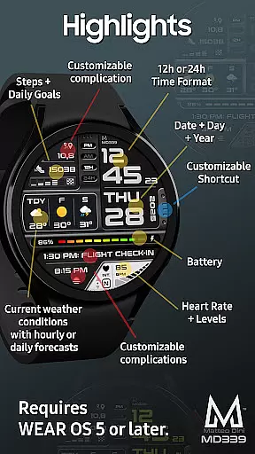 Device compatibility is crucial when selecting a digital watch face, and the MD339 offers extensive support for modern Wear OS devices. Designed to work seamlessly with API Level 34+ (Wear OS 5 and later versions), this watch face is optimized for Samsung Galaxy Watch 4-8, Ultra, Pixel Watch, and other similar devices.