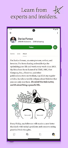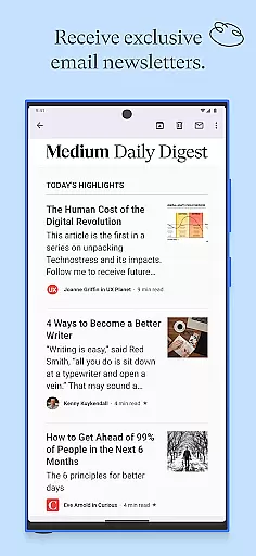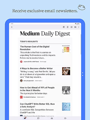 The app also supports cross-device synchronization, allowing seamless access on smartphones, tablets, and desktops. Whether you're looking to deepen your knowledge, spark new ideas, or engage with a community of intelligent readers and writers, Medium delivers a distraction-free environment focused on the power of the written word.