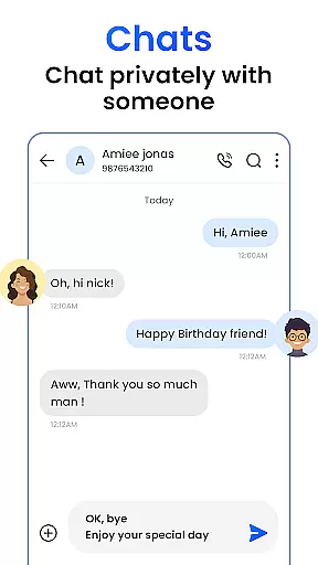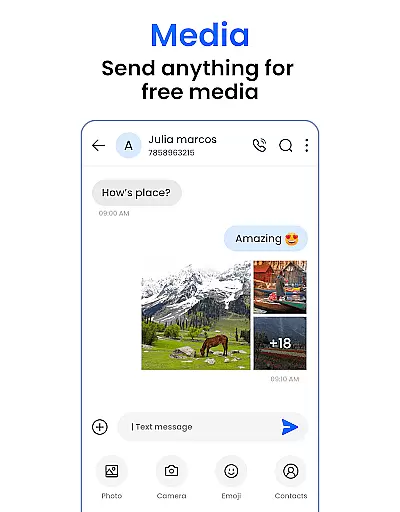 The app enables effortless sharing of photos, videos, and voice messages. Its optimized compression algorithms ensure that media files are transferred quickly without compromising quality. Users can easily capture and send multimedia content directly from their device's gallery or camera.