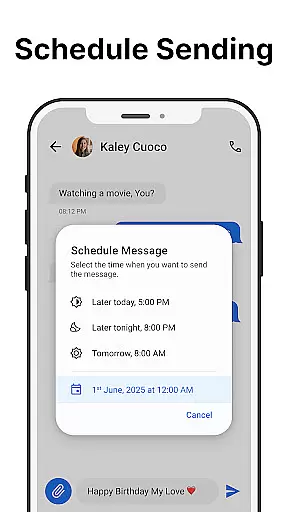 Messages distinguishes itself through a comprehensive set of features tailored to enhance traditional SMS functionality. At its core, the app supports quick and reliable sending and receiving of text messages, ensuring smooth communication even without internet access. Additionally, the scheduling feature lets users compose messages ahead of time and have them delivered automatically at a chosen moment, streamlining daily workflows.