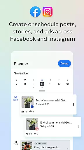 Meta Business Suite is a comprehensive business management tool designed to help businesses grow and engage with their audience more effectively. The app allows users to manage their Facebook Page and Instagram account from a single platform, making it easier to create, schedule, and oversee posts and stories.