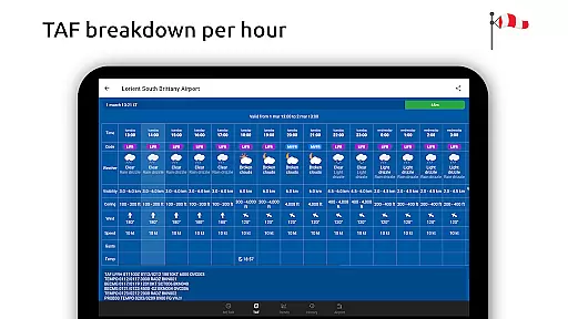 For comprehensive aviation planning, having a detailed temporal and spatial forecast range is crucial. Metar-Taf excels in this area by providing hourly breakdowns of TAF forecasts displayed in an organized table format.