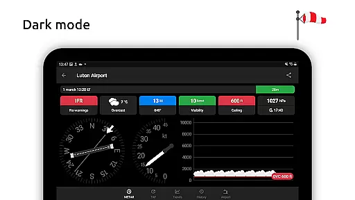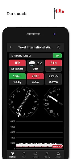 The app's tracking capabilities allow users to maintain a list of favorite stations for quick reference, find stations through an interactive map, and search airports by various identifiers. Historical weather data is presented through detailed graphs showing temperature, visibility, wind speed, and QNH trends. Metar-Taf's customization options are particularly impressive, offering adjustable units for speed, altitude, visibility, temperature, and air pressure across both metric and imperial systems. All airport times are automatically converted to local time, and sunrise/sunset calculations are based on precise latitude/longitude coordinates.