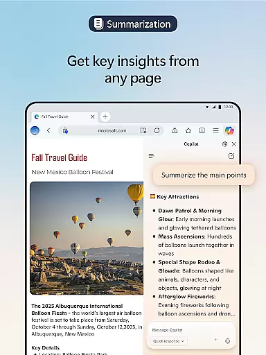 Microsoft Edge stands out with its innovative features designed to enhance productivity and creativity. The built-in Copilot leverages GPT-5 technology to provide rapid responses and deep insights, transforming how users interact with web content by summarizing pages and videos efficiently.