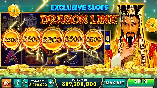 The app features exciting slot games including Dragon Link and Buffalo slots, offering Hold & Spin bonus rounds, free spins, and virtual coin rewards. Missions, daily bonuses, collections, and milestones guide players through their journey across various slot games.