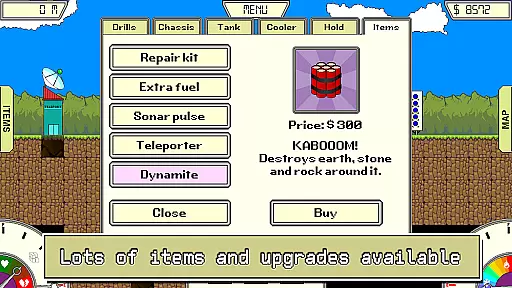 Miner Premium stands out with its diverse range of features designed to enhance the gaming experience. The game includes eight types of valuable materials and some extra precious items, providing a rich variety of collectibles. Players can upgrade various parts of their mining vehicle, which is crucial for advancing deeper into the earth.