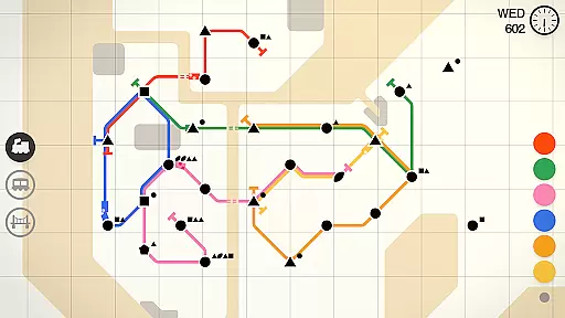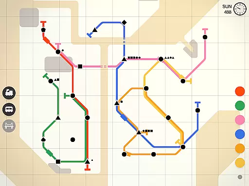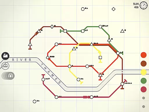 Players must decide when to add new lines versus upgrading existing ones, considering factors such as passenger flow patterns and station congestion. These decisions impact the overall balance of resources and can dramatically affect the network's performance. The game's color-coded passenger system adds another layer of complexity to resource allocation.