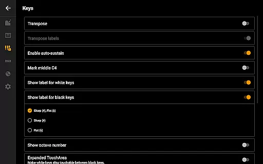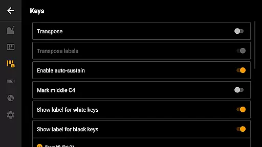 Further enhancing its utility, Mini Piano Pro allows users to record their performances and set them as ringtones. Recordings can be exported in multiple formats such as MP3, AAC, or WAV. Additional functionalities include note labeling, metronome use for tempo maintenance, keyboard transposition, and MIDI input/output support for integration with external devices. These comprehensive features make Mini Piano Pro a highly customizable and indispensable tool for musicians.