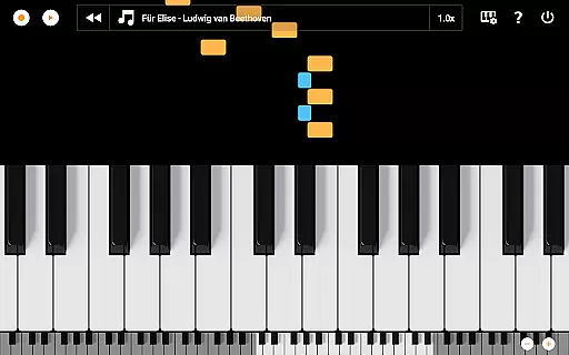 One of the standout features is the song mode with falling blocks, which assists users in learning to play new songs effectively. The app supports Dark Mode, presenting a fully darkened keyboard for those who prefer a subdued visual environment. Multitouch support enables users to utilize all their fingers, mimicking the natural hand positioning of a traditional piano.