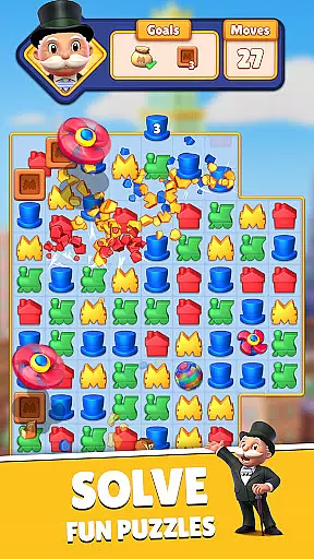 The game features hundreds of levels where players clear puzzles to earn dice rolls, collect legendary properties like Boardwalk and Park Place, and expand their real estate empire. With additional elements like the Community Chest and Chance cards, this unique blend offers both strategy and luck in every move.
